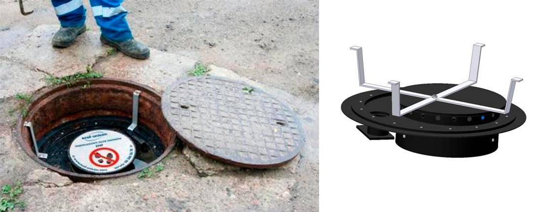Данные фильтры предназначены для установки в колодцах коммунальной или промышленной канализации. Установка фильтра позволяет устранить неприятный запах канализации без нарушения естественной циркуляции воздуха в канализационном колодце. Основные элементы фильтра выполнены из антикоррозийного материала полиэтилена высокой плотности (HDPE).