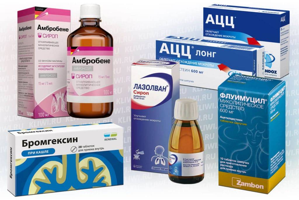 В составе муколитиков содержатся: амброксол, карбоцистеин, бромгексин, ацетилцистеин. С помощью муколитиков можно избавиться от продуктивного кашля в течение 7 дней.