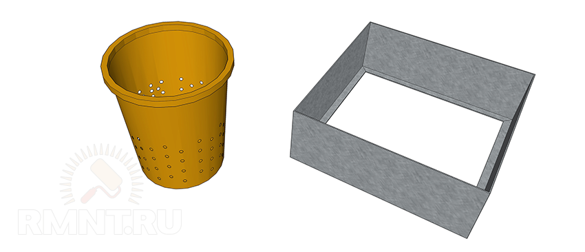 Ёмкости нужно предварительно подготовить. В нижней половине стенок внешнего сборника изготавливаем 10 мм отверстия через 7–10 мм в общем количестве 20–25 шт., и те же манипуляции проводим с дном.