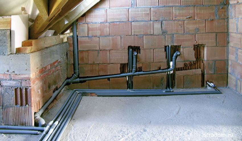 Сначала необходимо правильно выбрать трубы. Для горизонтальных труб хватает диаметра 50 мм, для стояков – 110 мм. Разводка проектируется с верхнего этажа.