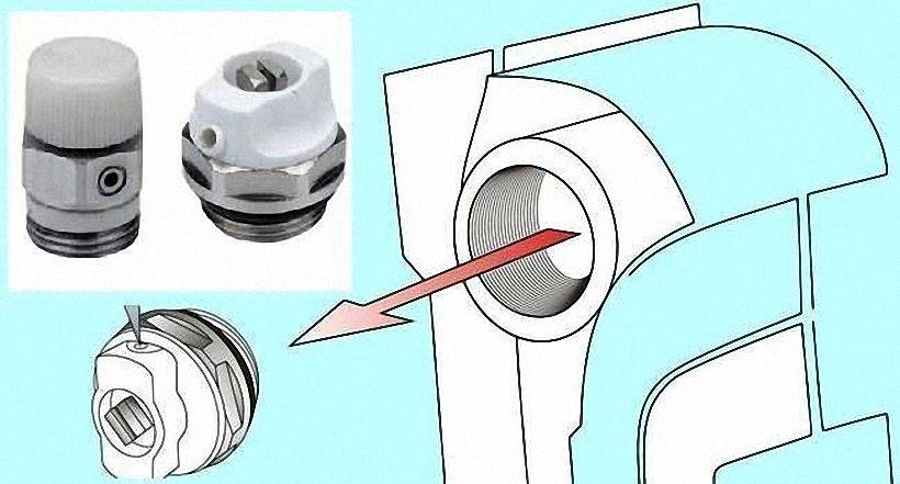- Резьба радиаторной пробки подматывается. Как вариант, пробка снабжается силиконовой герметизирующей прокладкой;