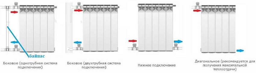 - Заранее определитесь с вариантом подключения радиатора к трубопроводам – седельное, диагональное, одностороннее.