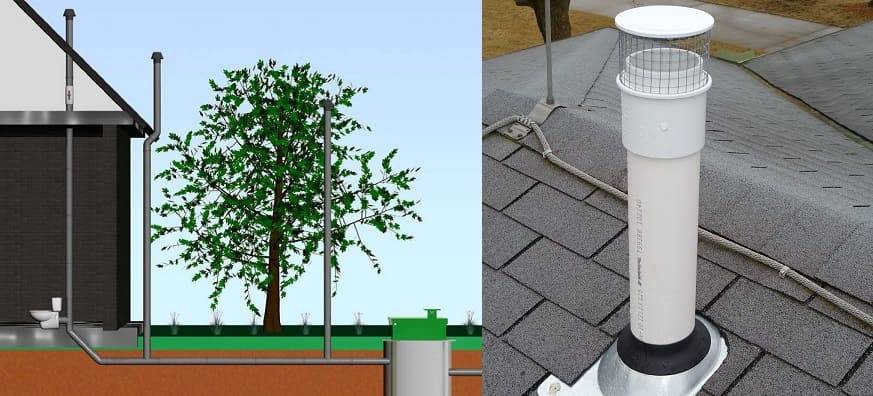 И последнее, если отсутствует стояк, то вентиляция обеспечивается забором чистого воздуха из труб септика, а выведение грязного – через вентиляционный канал, выведенный на крышу.