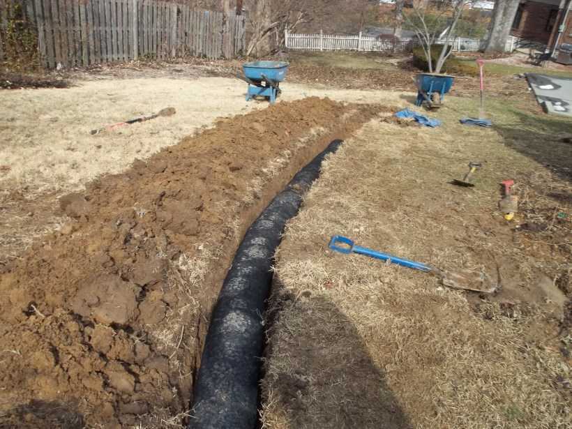 Отдельное внимание уделяется дренажу оврагов, ручьев и небольших рек, которые засыпаются. Из-за естественного накопления воды следует провести прокладку двух дрен в глинистом грунте