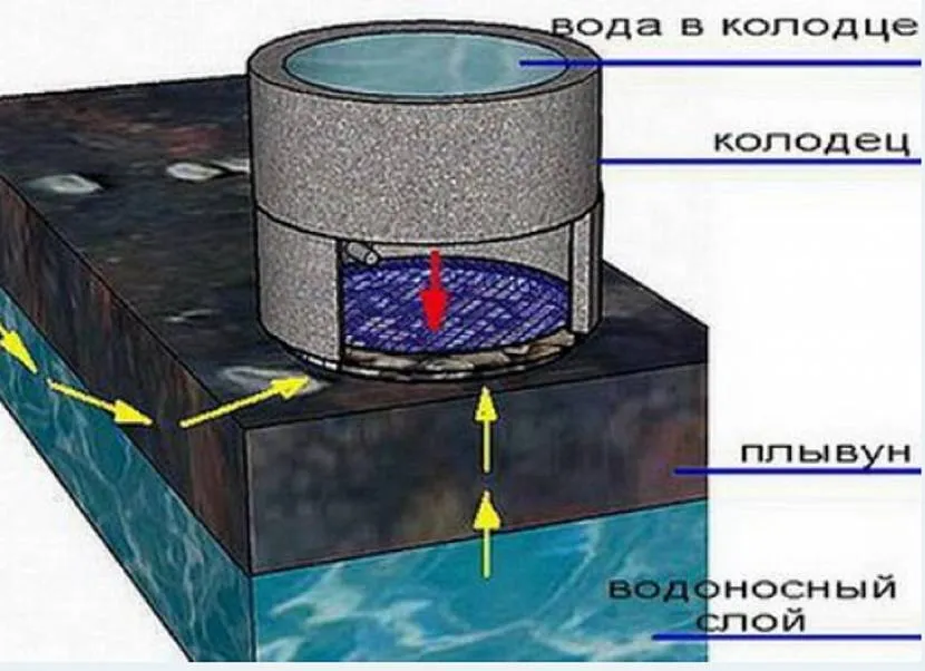 Часто колодцы устанавливают на плывуне. Из-за наличия в воде высокого содержания примесей владельцу придется контролировать концентрацию и ликвидировать признаки. Вокруг конструкции проседает грунт и могут разгерметизироваться швы, что приведет к заражению влаги.