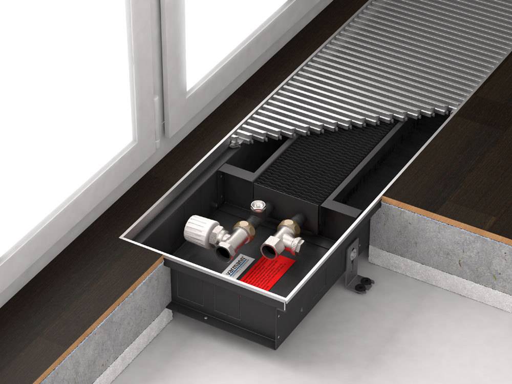 Существует еще одна разновидность конвекторов отопления, сильно отличающаяся от рассмотренных выше и потому стоящая особняком. Необычны они местом своей установки – в нише, расположенной ниже уровня пола. С большой долей вероятности встретить подобные отопительные приборы можно в помещениях торгового или офисного назначения с большими панорамными окнами, на фоне которых обычные радиаторы или конвекторы будут смотреться не совсем уместно.