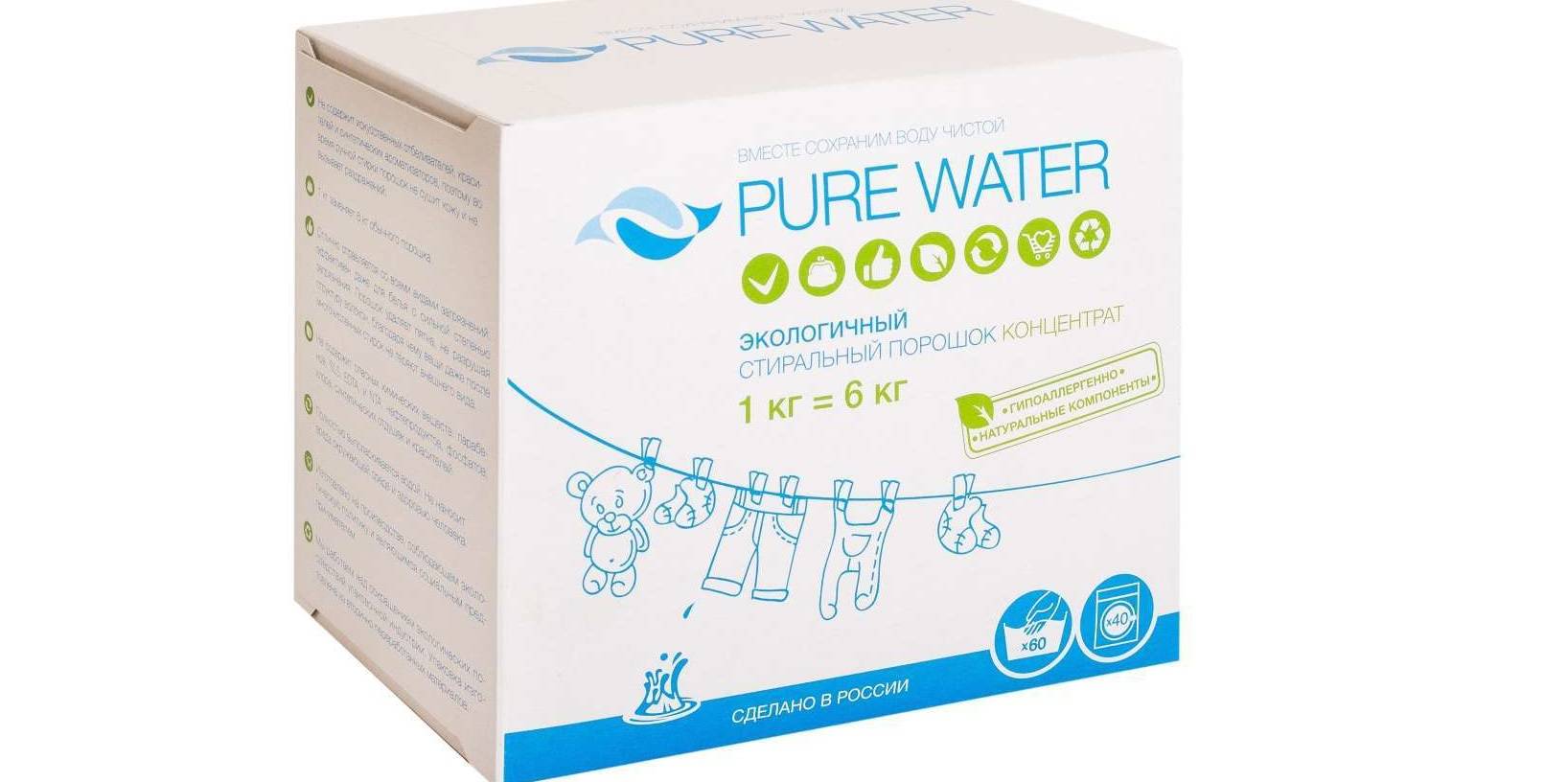 Концентрированная форма средства обеспечивает экономичный расход. Килограмм порошка PURE WATER заменяет 6 кг обычного порошка, что позволяет дольше использовать средство.